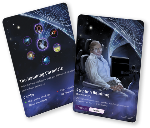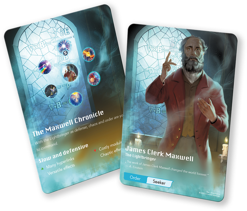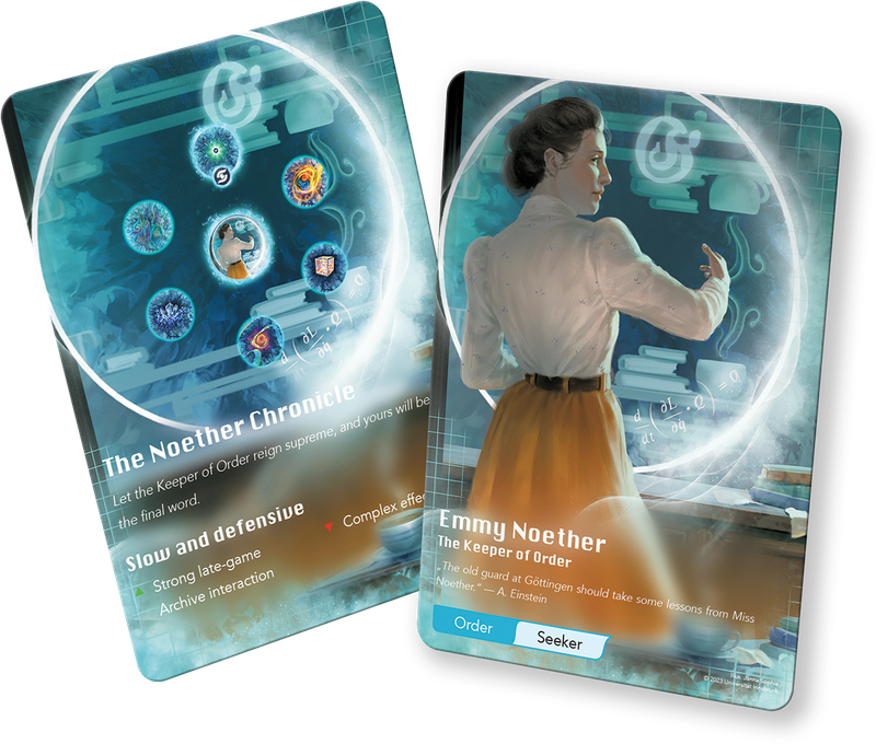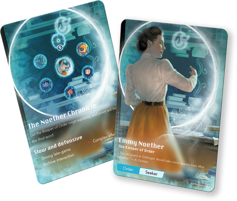 Draft your Seekers and immerse yourself in an elegant blend of resource management and strategic duels. Players lead the greatest minds in history in dynamic, deck-drafting battles, racing to complete the three stages of scientific discovery: Hypothesis, Evidence, and Conclusion. Players cycle through their decks three times to achieve victory ahead of their opponents.